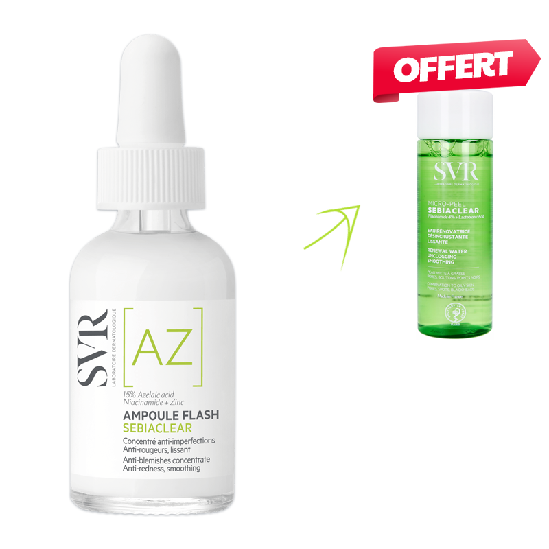 SVR Sebiaclear Ampoule Flash convient à toutes les peaux à tendance acnéique, même les plus sensibles. Que vous ayez des rougeurs, des imperfections ou des marques laissées par l'acné, ce soin peut être utilisé dès l'âge de 10 ans. Son caractère non comédogène garantit une utilisation quotidienne sans risque d'aggraver les problèmes cutanés.