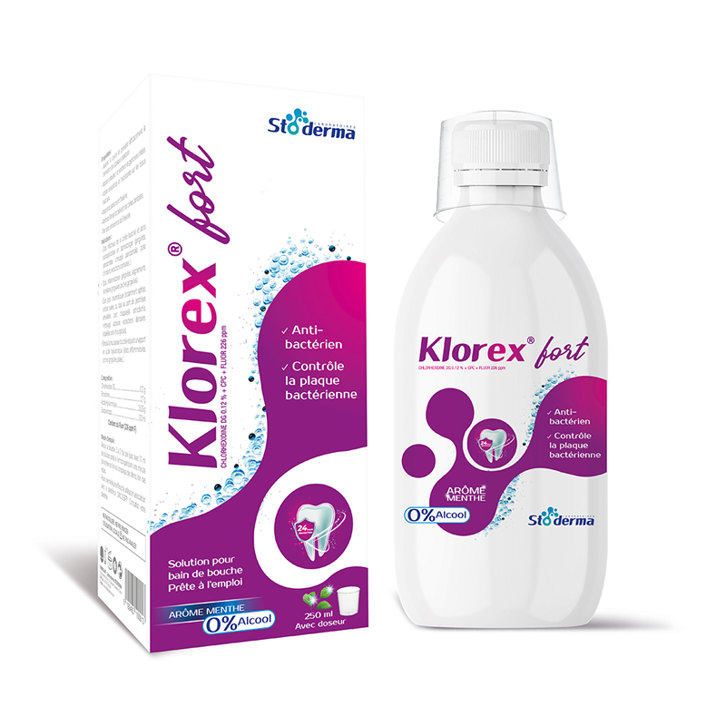 - Une utilisation prolongée de KLOREX Fort, en association avec certaines boissons ou habitudes (vin, café, tabac…), peut provoquer une coloration temporaire des dents ou de la langue, qui disparaît après l'arrêt du traitement.