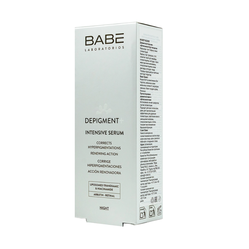 Babe Depigment+ Intensive Serum est un sérum concentré spécialement formulé pour corriger les taches pigmentaires, unifier le teint et raviver l’éclat de la peau. Grâce à son action ciblée et progressive, il agit à la fois sur les taches visibles et celles encore présentes sous la surface cutanée.