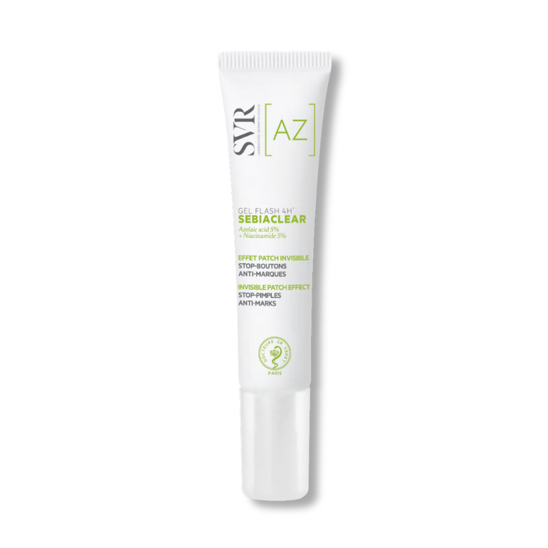 SVR Sebiaclear Gel Flash 4H est un soin ciblé conçu pour agir rapidement sur les imperfections localisées. Grâce à sa technologie gel effet patch invisible, il assèche, apaise et réduit visiblement les boutons en seulement 4 heures, tout en protégeant la zone traitée des agressions extérieures.